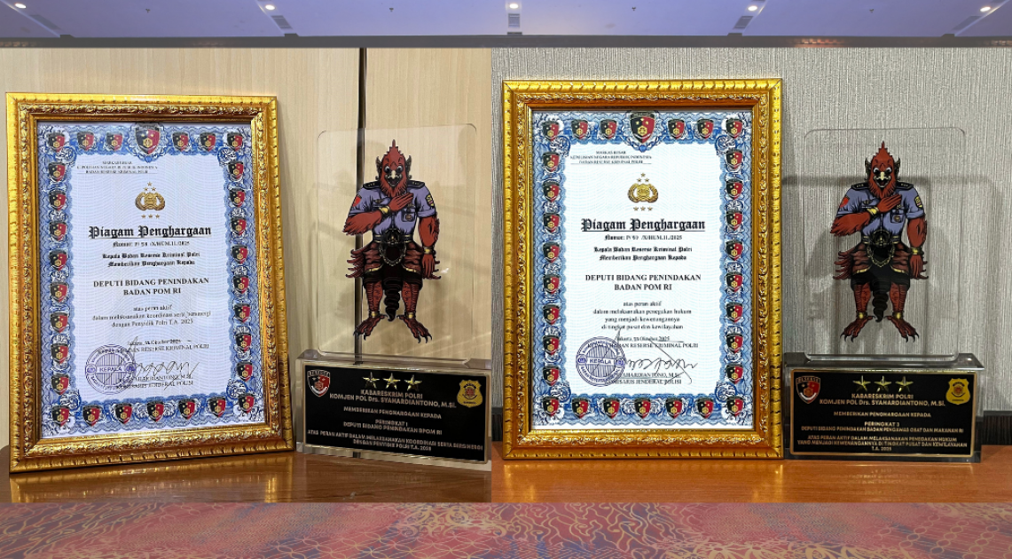 Intimate.co.id | Jakarta,  BPOM mendapatkan 2 penghargaan dari Kepolisian Negara Republik Indonesia (Polri) yang diberikan pada kegiatan Rapat Koordinasi Pengawasan Penyidik Pegawai Negeri Sipil (Rakor Korwas PPNS) Bareskrim Polri Tahun Anggaran 2025 di Bidakara, Kamis (23/10/2025). Penghargaan yang diberikan kepada Deputi Bidang Penindakan BPOM tersebut yaitu Peringkat I atas pencapaian peran aktif dalam melaksanakan koordinasi serta bersinergi dengan penyidik Polri serta Peringkat III atas pencapaian peran aktif dalam melaksanakan penegakan hukum yang menjadi kewenangannya di tingkat pusat dan kewilayahan.