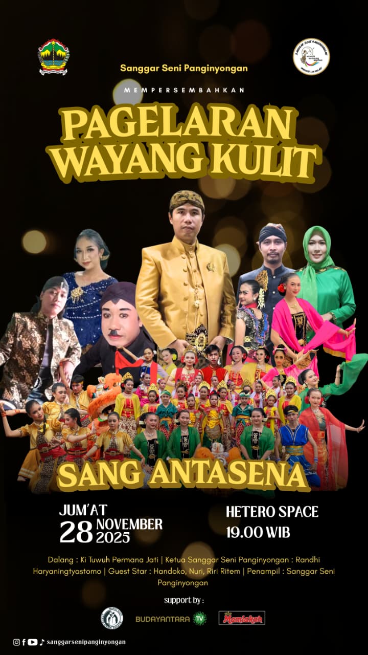 Intimate.co.id | Jakarta , Komitmen Budayantara Media dalam merawat dan mempromosikan seni budaya Nusantara kembali diwujudkan melalui sebuah gelaran akbar. Sanggar Seni Panginyongan,akan mempersembahkan Pagelaran Wayang Kulit “Sang Antasena” pada Jum’at, 28 November 2025 mendatang bertempat di Hetero Space Purwokerto, mulai pukul 19.00 WIB.