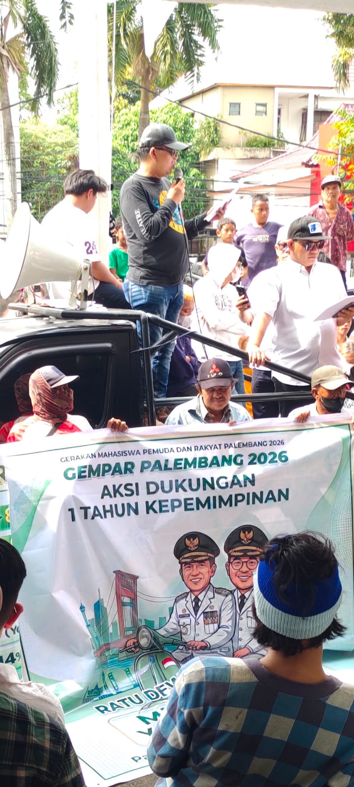 Intimate.co.id – PALEMBANG – Ribuan massa yang tergabung dalam Gerakan Mahasiswa Pemuda Rakyat (GEMPAR) Palembang 2026 menggelar aksi damai di depan kantor Wali Kota, Senin (02/03). Aksi ini merupakan bentuk apresiasi sekaligus manifestasi transparansi publik atas satu tahun masa pengabdian kepemimpinan Ratu Dewa dan Prima Salam (RDPS) di Bumi Sriwijaya.
