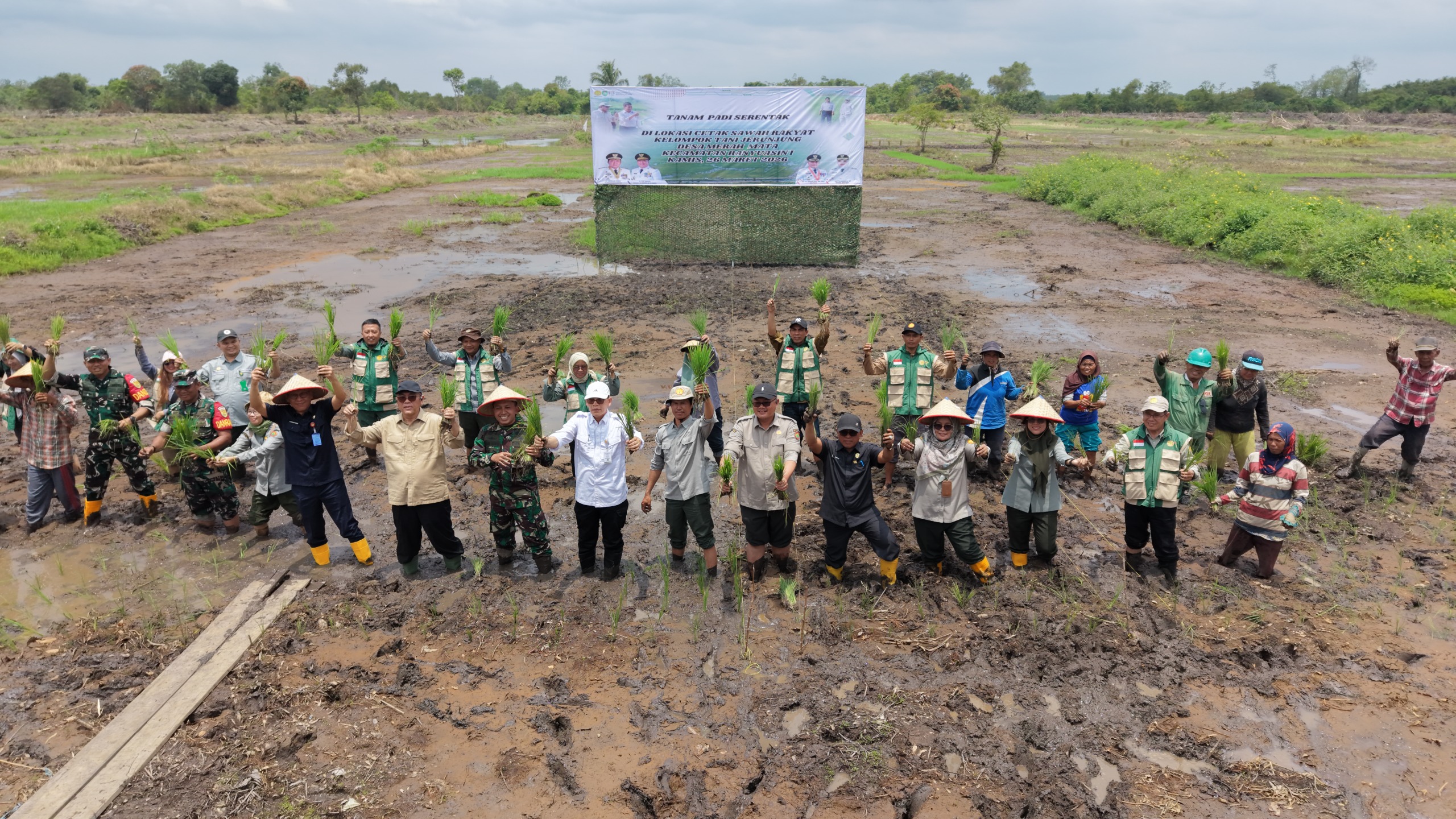 Intimate.co.id |Banyuasin – Dalam rangka mendukung program ketahanan pangan nasional, dilaksanakan kegiatan tanam padi serentak di lokasi cetak sawah yang bertempat di Desa Merah Mata, Kecamatan Banyuasin I, Kabupaten Banyuasin, Provinsi Sumatera Selatan.